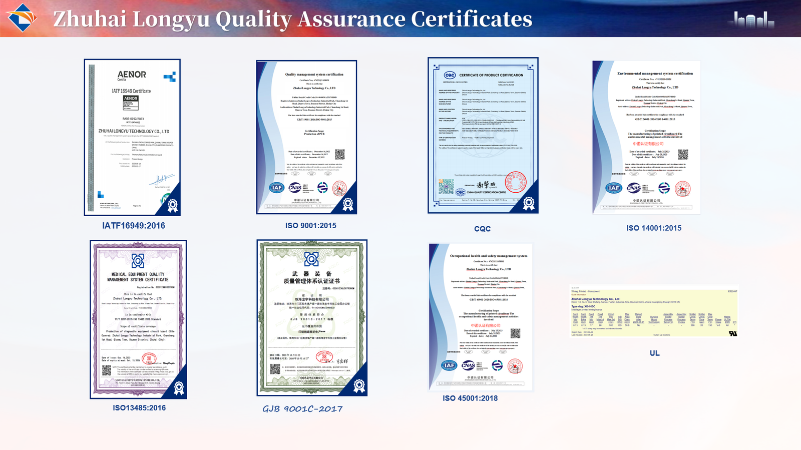 | IATF16949 | Automotive PCB production standards | Zhuhai Longyu |